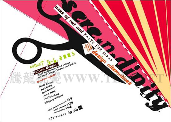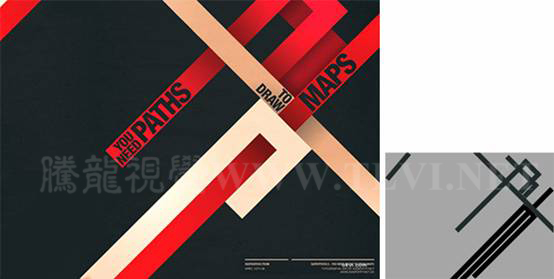 線具有引導視線的作用,在設計中應用很廣。在下圖平面設計作品中,就是運用不同粗細的斜線,把人們的視線引向主題,使主題更加明確。