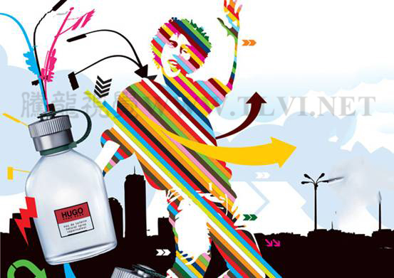 線在設計中發(fā)揮著重要的作用。把線靈活的運用到設計中去,一定會使自己的設計作品有很大的提高。在下圖廣告設計中,不同形式的線的運用,使畫面充滿了強烈的美感。