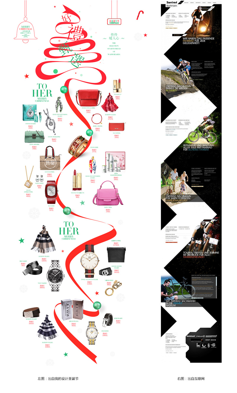 01.左圖是我當時做的一個圣誕節的整體創意頁面,以禮結的形式貫穿整體設計中。當時做的時候,就把整體的禮結元素放大化,做為主元素去表現;
