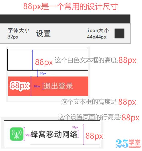 7、常用可點擊區域的高度:88px;