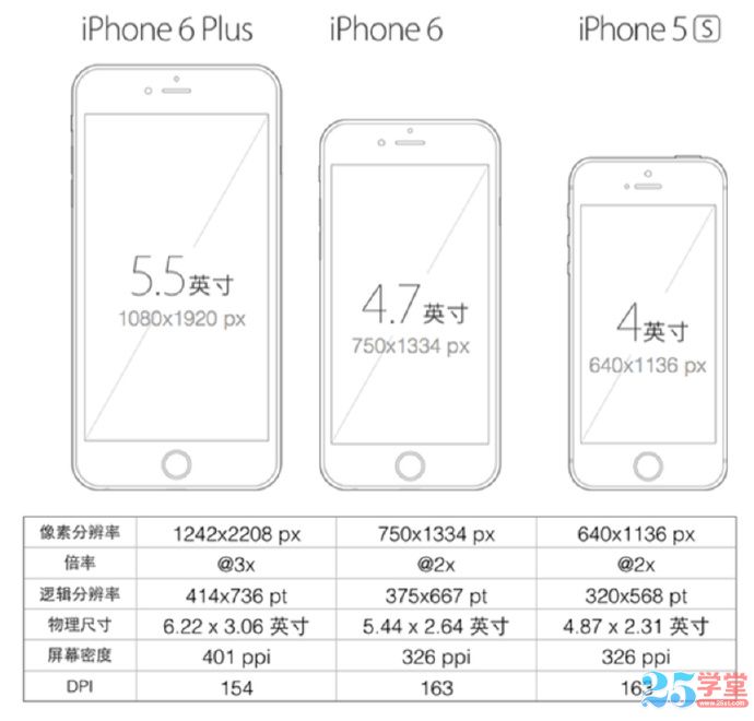 目前,很多APP設計師的APP Ui設計稿是先做iPhone6的,方便向上適配iPhone6Plus,也方便向下適配iPhone5和iPhone4的尺寸。這一節課也算是25學堂為大家精心整理的iPhone6界面設計尺寸規范大全。