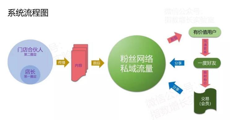 整個私域流量體系從現(xiàn)有的門店店主和門店的忠實(shí)會員出發(fā),通過內(nèi)容分享和傳播機(jī)制,在傳播過程中不斷跟蹤和繪制門店的粉絲網(wǎng)絡(luò)的私域流量,并從中找到關(guān)鍵節(jié)點(diǎn),即發(fā)現(xiàn)有價值的用戶。